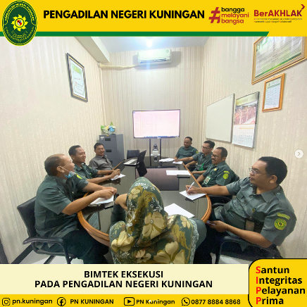 Drs. Dadang Sudrajat selaku Panitera Pengadilan Negeri Kuningan memimpin Bimtek Eksekusi pada Pengadilan Negeri Kuningan yang bertempat di Ruang Mediasi.