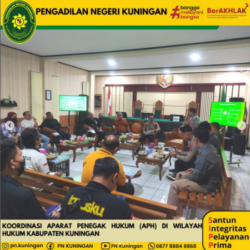 Bertempat di ruang Sidang Ali Said Pengadilan Negeri Kuningan Telah dilaksanakan Koordinasi Aparat Penegak Hukum (APH) di Wilayah Hukum Kabupaten Kuningan terkait Pelaksanaan Elektronik Berkas Pidana Terpadu (e-Berpadu).