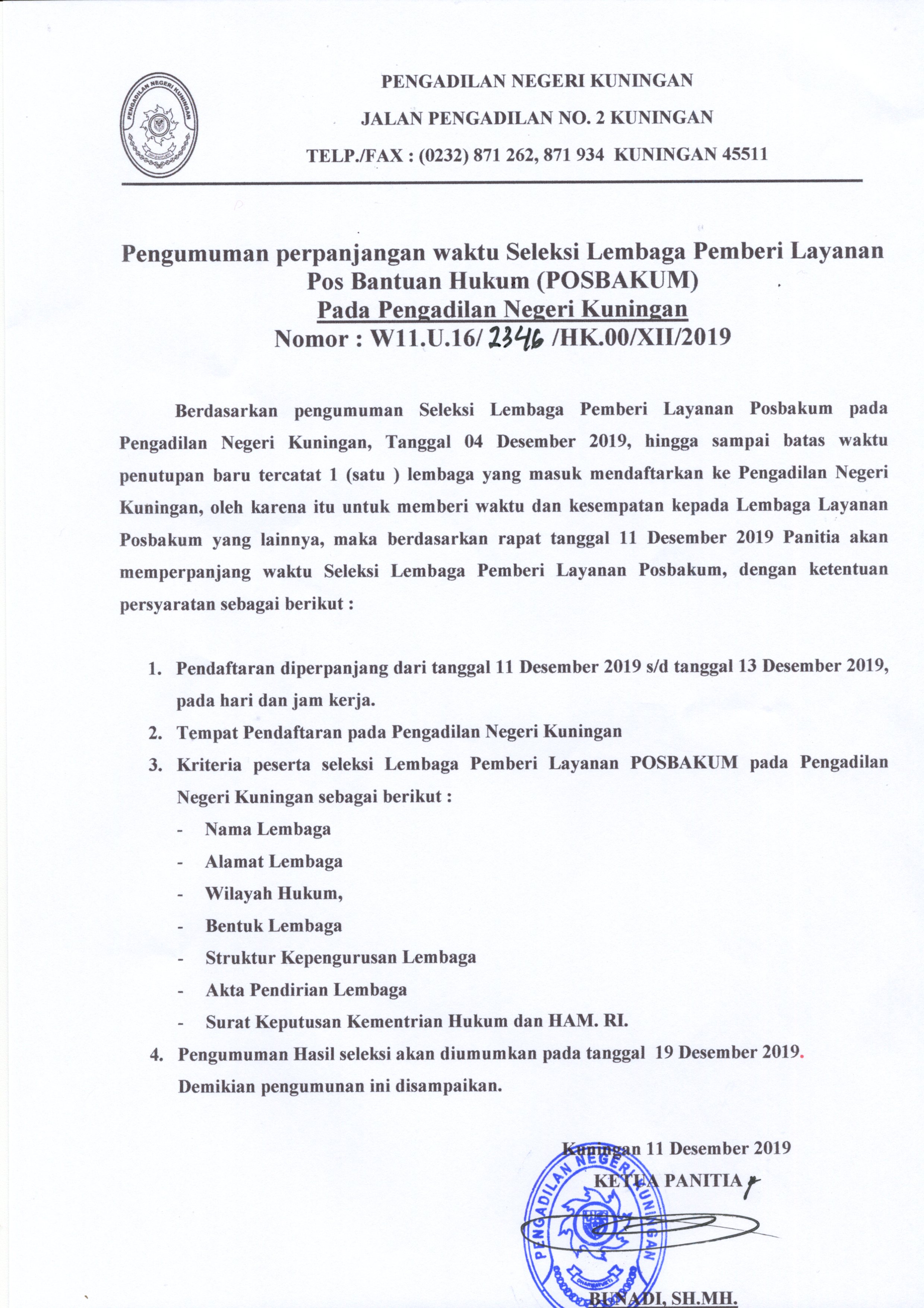 Pengumuman Perpanjangan Waktu seleksi Lembaga Pemberi Layanan POSBAKUM