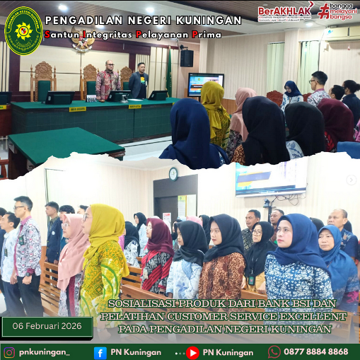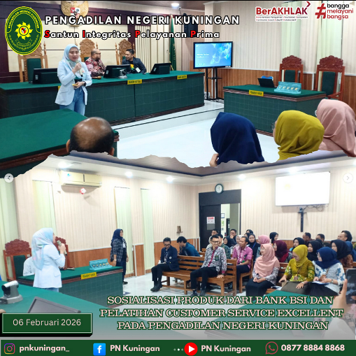 Bertempat di Ruang Sidang Ali Said Pengadilan Negeri Kuningan Telah dilaksanakam Sosialisasi Produk Dari BANK BSI dan Pelatihan Customer Service Excellent Pada Pengadilan Negeri Kuningan