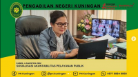 Kamis (4/8/2022) Ketua Pengadilan Negeri Kuningan Ibu Lusiana Amping, S.H., M.H menghadiri acara Sosialisasi Akuntabilitas Pelayanan Publik yang dilaksanakan oleh Ditjen Badilum secara daring, dengan peserta seluruh Pengadilan Tinggi dan Pengadilan Negeri. Dengan pembicara Prof. Dr. Diah Natalisa, MBA dan Muhammad