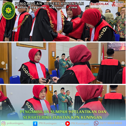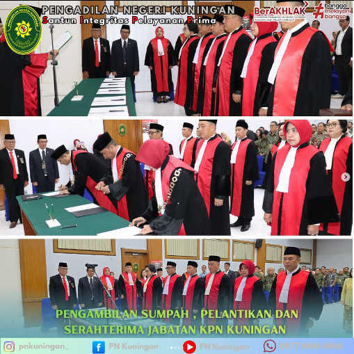 Telah di laksanakan acara Pengambilan Sumpah , Pelantikan dan Serah Terima Jabatan Ketua Pengadilan Negeri Kuningan oleh Bapak Dr. Moh. Eka Kartika E.M., S.H., M.Hum. selalu Ketua Pengadilan Tinggi Bandung.