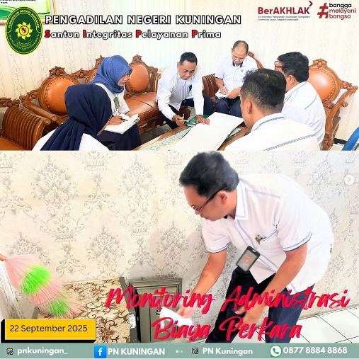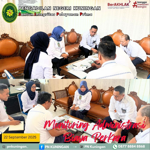 Telah dilaksanakan Monitoring Administrasi Biaya Perkara (Sidang Uang Perkara) oleh Ketua Pengadilan Negeri Kuningan Ibu Ardhianti Prihastuti, S.H., M.H. Perihal Keuangan Perkara Perdata Triwulan III Tahun 2025 pada Pengadilan Negeri Kuningan yang bertempat di ruang Panitera Pengadilan Negeri Kuningan.