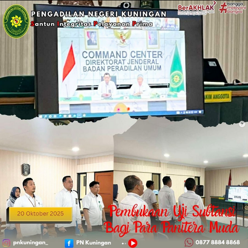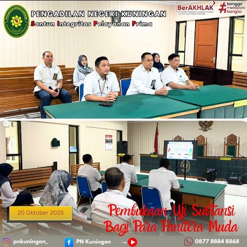 Para Panitera Muda Pengadilan Negeri Kuningan Mengikuti Pembukaan Uji Subtansi bagi Panitera Muda Pengadilan Tinggi dan Pengadilan Negeri di Lingkungan Peradilan Umum Secara online melalui Zoom Meeting, Bertempat di Ruang Sidang Subekti.