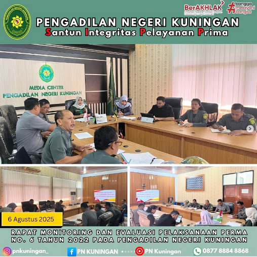 1. Monitoring dan Evaluasi Pelaksanaan PERMA No. 6 Tahun 2022 tentang Administrasi Pengajuan Upaya Hukum dan Persidangan Kasasi dan Peninjauan Kembali di Mahkamah Agung secara Elektronik pada Pengadilan Negeri Kuningan